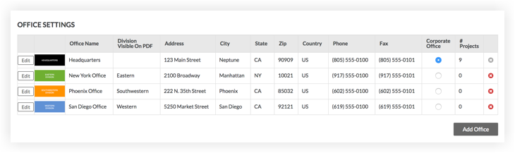 Note: The office can now be assigned to a Procore project. See Assign an Office Location to a Project.