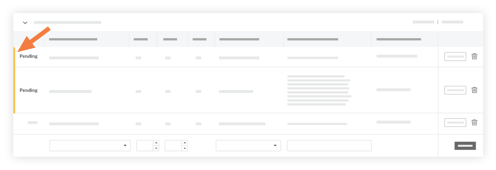 - Locate the entries you want to approve. Pending entries are marked in yellow.