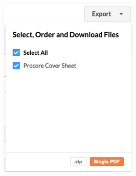 Procore opens the Select and Arrange Items window. - Choose the attachments to include by marking the attachment checkboxes: