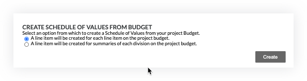 - If you will be creating a contract SOV from the project's budget as described below, ensure your contract's SOV is blank. You can only use those steps below when a contract's SOV has zero (0) line items. You must also: